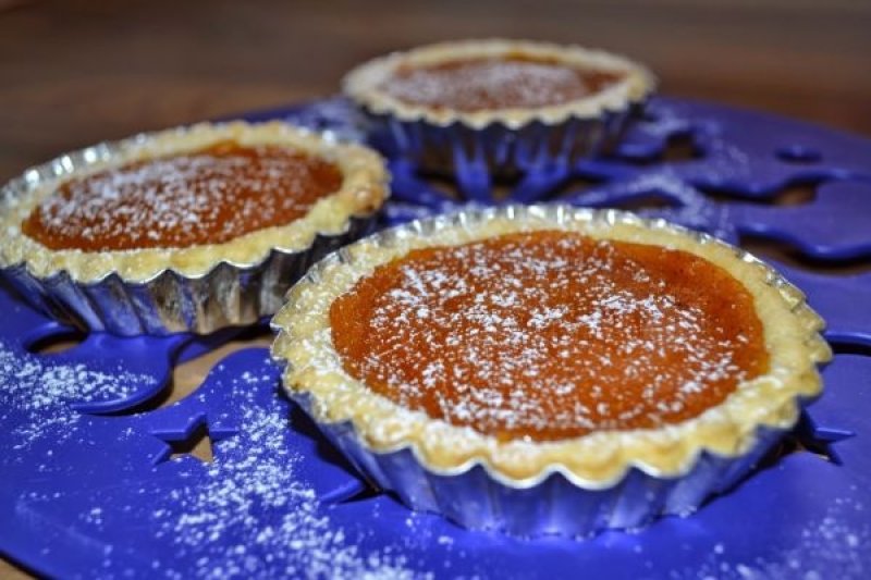 Intindeti aluatul intr-o foaie subtire si captusiti cu el tavitele tapetate cu margarina si faina. Intepati aluatul cu o furculita si asezati dulceata de dovleac deasupra. Dati la cuptorul preincalzit la 180 C pentru 40-45 de minute. Serviti reci sau putin caldute. Pofta Buna!