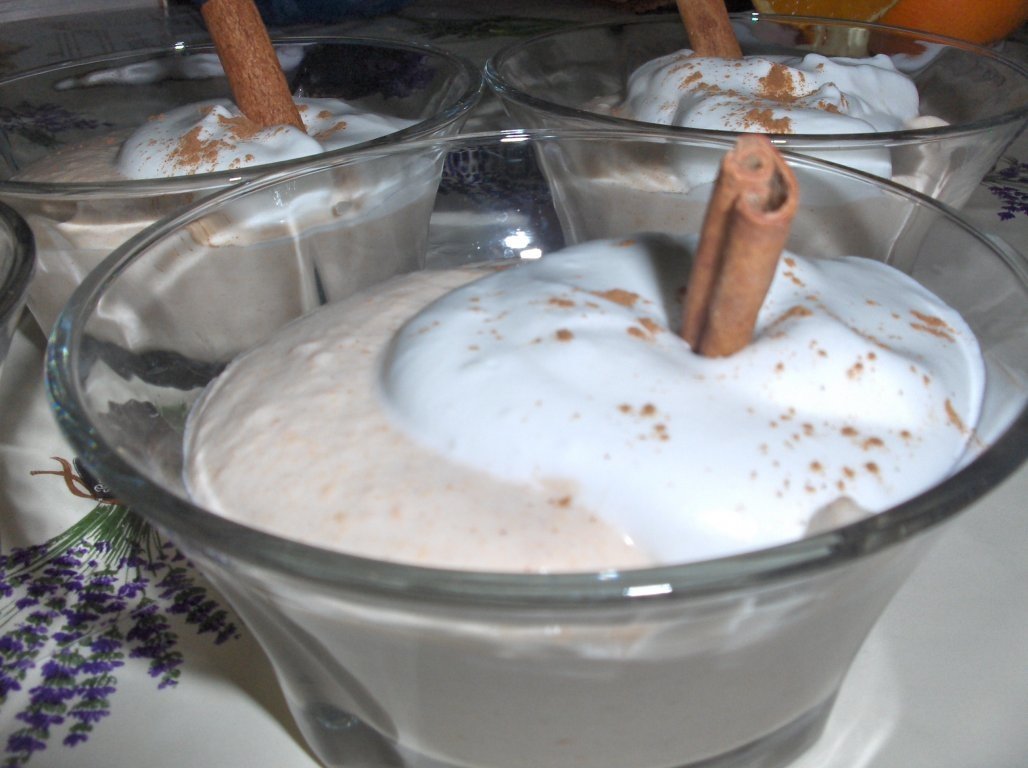 Toarnã incet amestecul peste lapte, amestecând incontinuu la foc mic, pânã se ingroasã.