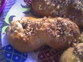Se lasa un pic la racit ii teci prin sirop,ii ungi cu miere si presari nuca.