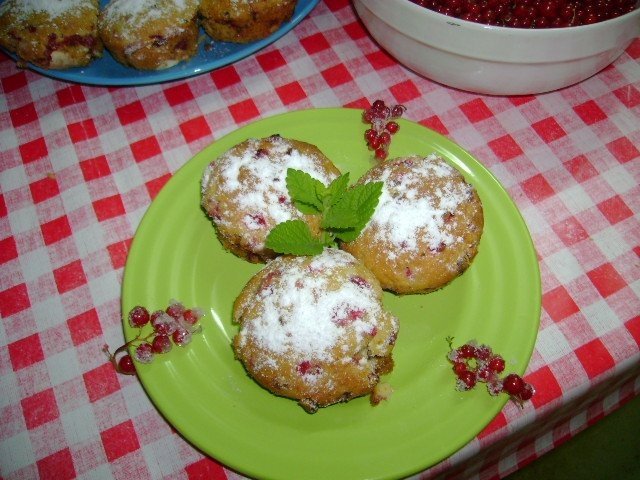 Spalam coacazele si ii lasam sa se curga, apoi, cu ajutorul unei furculite scoatem boabele de coacaze de pe ciorchine. Punem boabele intr-un vas, presarim cu 1/3 din zahar si o punem la o parte. Topim untul sau margarina intr-o cratita si lasam sa se raceasca un pic. Intre timp batem ouale cu zaharul ramas, adaugam treptat untul topit si laptele. La aceasta compozitie adaugam coacazele si amestecam usor.Amestecam faina cu praful de copt, apoi o adaugam treptat la aceasta compozitie.
