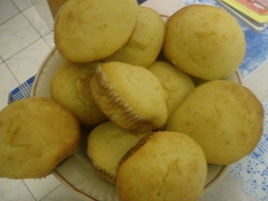 Mai intii, am batut bine ouale, am adaugat treptat zaharul. Unul l-am topit, l-am lasat sa se racoreasca putin si l-am pus si pe el peste oua si zahar. Am stors zeama cam de la 1 portocala si jumatate (in reteta initiala se specifica 200 ml suc de portocale - avantajul cind se stoarce portocala este ca, pe linga sucul natural, mai ajunge in prajitura si ceva pulpa de portocala...). Am turnat apoi faina, am pus coaja de portocale, putina de lamiie, putina esenta de portocale. A iesit un aluat destul de lichid, pe care l-am turnat in tava cu forme de briose, captusite cu hirtie de briose. Am pudrat cu scortisoara. Briosele au stat in cuptor, la foc mediu, circa 15 minute. Au crescut foarte frumos, dupa cum se poate vedea in poze.