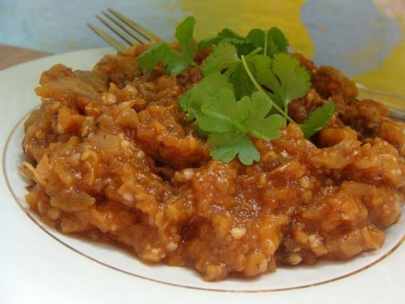 Se toc marunt vinetele (sau se dau prin robot) si se adauga in tigaie. Se mai prajesc putin,se presara cu patrunjel si coriandru (se potriveste de minune) si se serveste cald sau rece,ideal ar fi cu niste lipii.