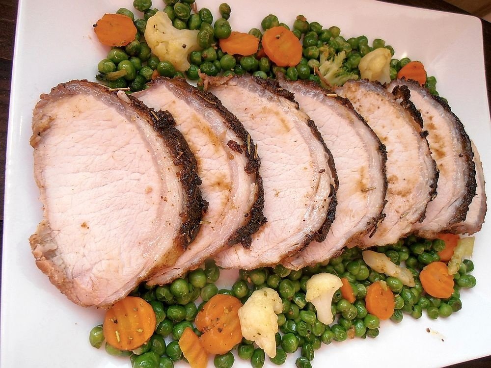 Amestecam intr-un bol condimentele si frecam bine muschiul cu amestecul rezultat. Punem muschiul in folie de aluminiu si il punem in tava. Adaugam vinul alb si dam la cutor 30-40 minute. Scoatem muschiul din folie si il glazuram cu mierea diluata cu otetul balsamic. Dam la cuptor din nou pentru 10-15 minute, ca sa se rumeneasca.