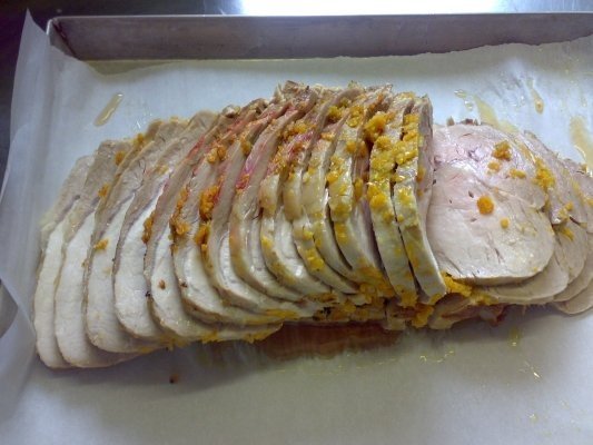 Se lasa la racit,dupa care se feliaza si e serveste alaturi de orice tip de garnitura;