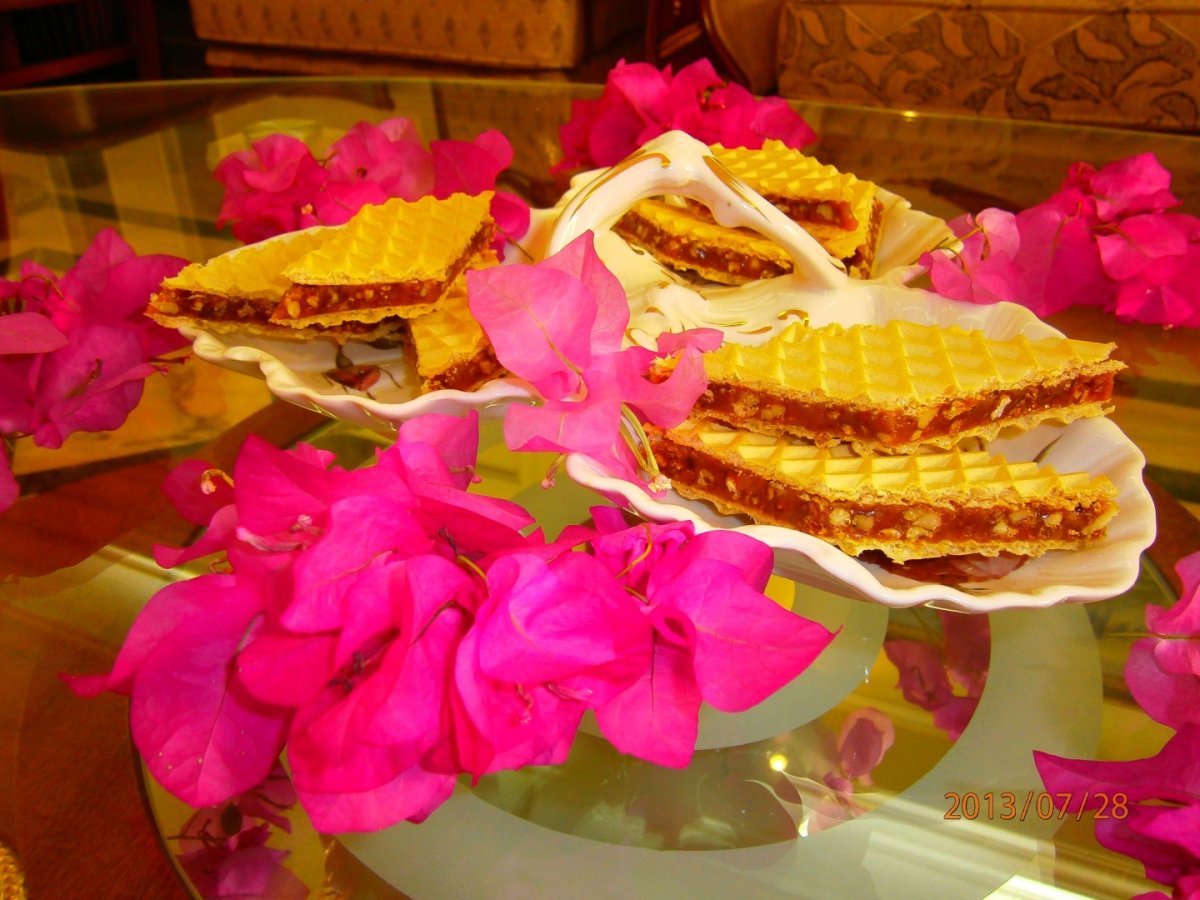Intr-o tigaie de teflon se ard 250 g zahar; se adauga nucile taiate marunt si se mai lasa putin cu zaharul ars.