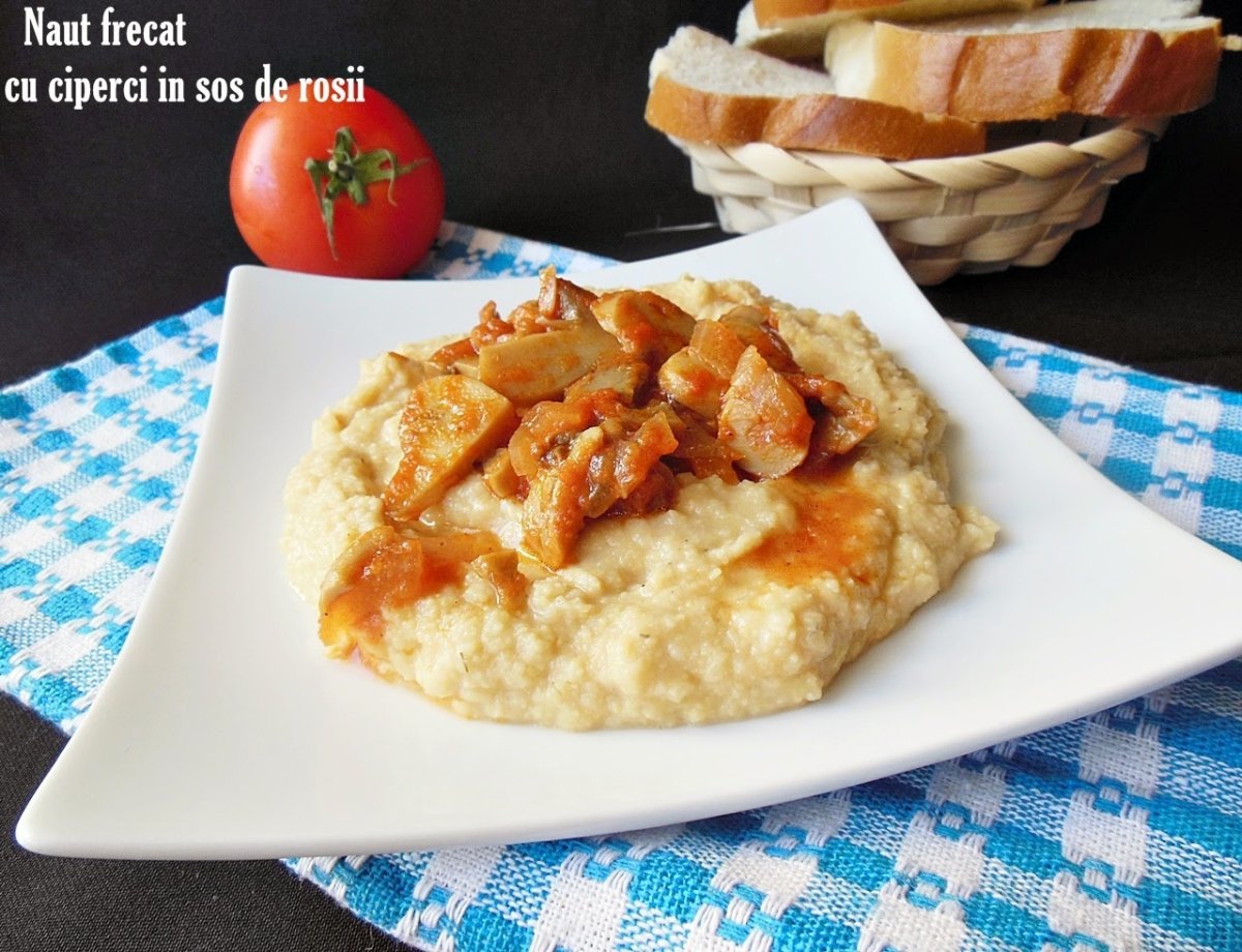Nautul il punem intr-un blender cu ceapa innabusita, usturoiul curatat, putina sare, piper, mararul uscat, putina zeama de la naut si le facem ca o pasta.