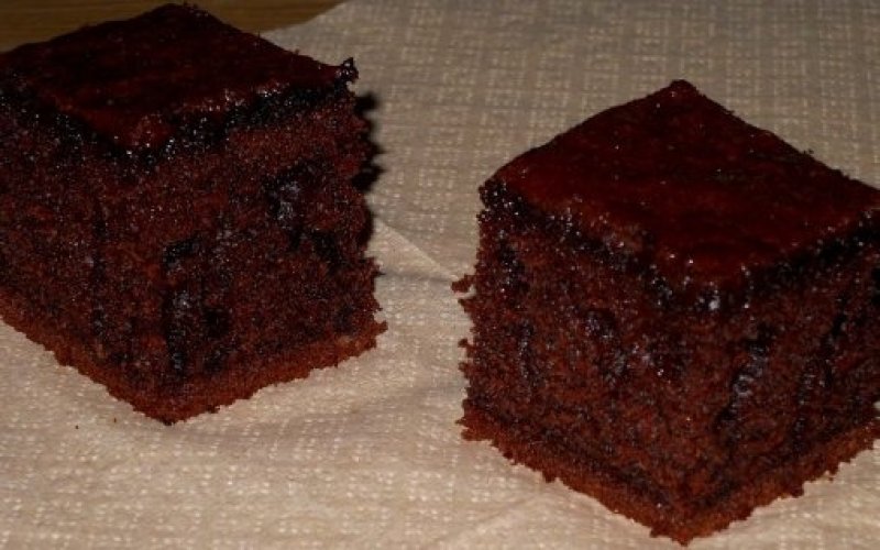 Etapa 1: Pentru inceput, margarina se taie în bucăţi şi se pune într-o oală. Se adaugă peste margarină zahărul, laptele şi cantitatea de cacao (se poate pune chiar mai multă decât am pus eu, în funcţie de cât de amăruie vreţi să fie prăjitura). Se pune oala pe foc şi se lasă să fiarbă până când se topesc margarina şi zahărul. Din acest amestec, se pun de-o parte într-un castronel aproximativ 15 linguri, pentru ca veţi avea nevoie de o glazura delicioasă la final. Se lasă la răcit în timp ce pregătiţi restul de compoziţie.Etapa 2: Se bat albusurile spuma. Faina se amesteca cu praful de copt, iar apoi se incorporeaza in sosul caldut impreuna cu galbenusurile, amestecand in continuu cu un mixer.