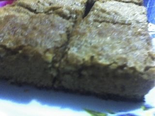 Se toarna intr-o tava de copt unsa.Se coace timp de 40-45 de minute,sau pina cind o scobitoare infita in mijlocul prajiturii iese cu frimituri moi.Se raceste pe gratar.Se pudreaza cu zahar,dupa gust.Se taie in dreptunghiuri.
