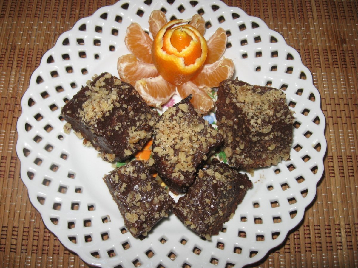 Amestecam faina, zahar, nuca, bicarbonatul, cacaoa si sarea.Peste amestecul rezultat turnam apa, uleiul, esente dupa gust si gemul . Incorporam ciocolata topita la bain marie cu 2 linguri de apa si amestecam pana se omogenizeaza compozitia.