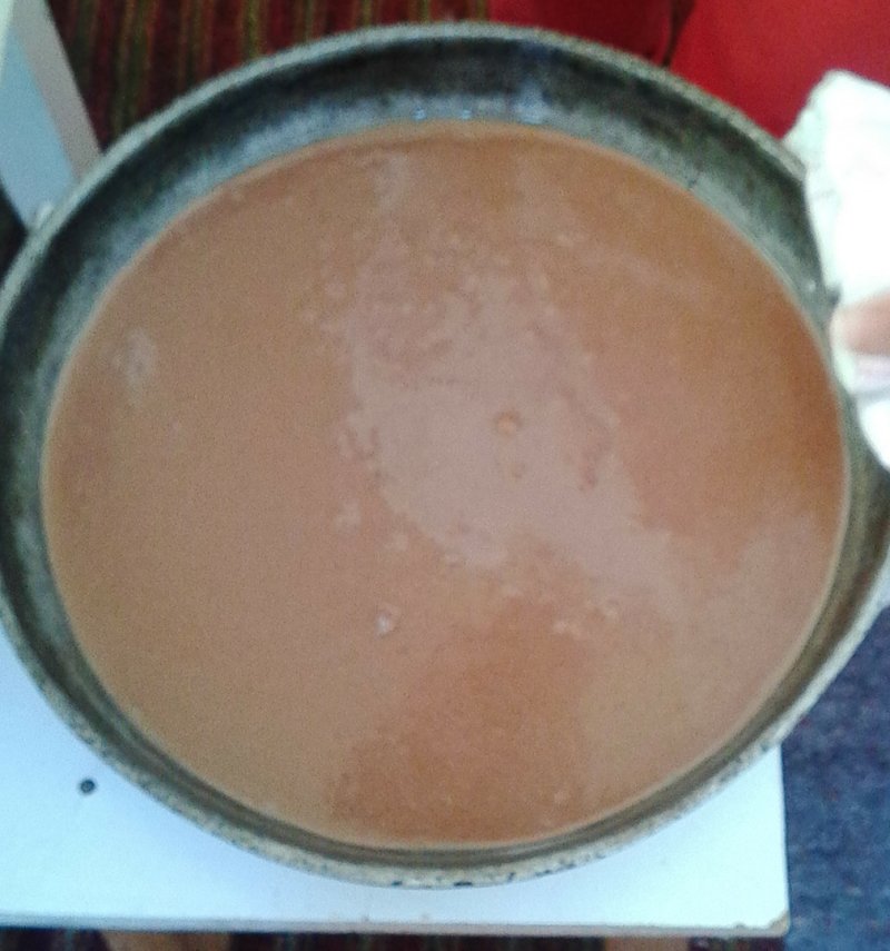 Galbenusurile se amesteca cu o cana si jumatate de zahar, 2 pahare de lapte dulce, un pahar de ulei, o lingurita de bicatbonat stins in otet, 2 cani de faina si 3 linguri de cacao.