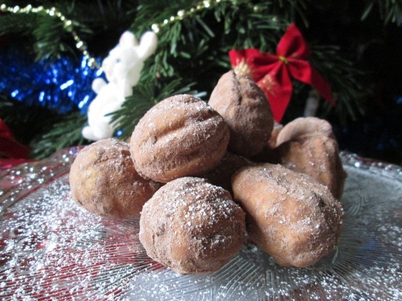 Punem forma pe foc, o ungem cu putin ulei prima data, apoi formam bilute din coca pe care le punem in fiecare loc din forma.Forma mea este de la bunica si are pe langa nuci si forme de prune,scoici si ciperci.Strangem bine de manere si tinem forma pe foc cateva minute,rasucind cand pe o parte cand pe cealalta, pana se rumenesc usor pe ambele parti.