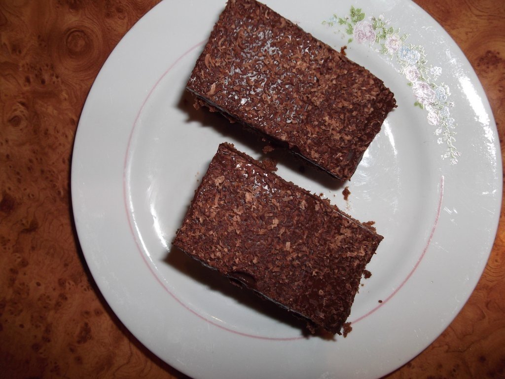 Pe prima jumatate de blat,se intinde jumatate din crema, se pune deasupra cealalta jumatate de blat si se acopera cu crema ramasa. Deasupra se presara ciocolata rasa.