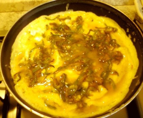 Bateti ouale cu sare si piper si adaugati florile cind sunt gata.