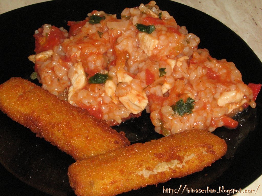 Se adauga sare si piper dupa gust. Cand este fiert orezul, se adauga pulpa de rosii si se lasa in continuare la fiert 10 minute.