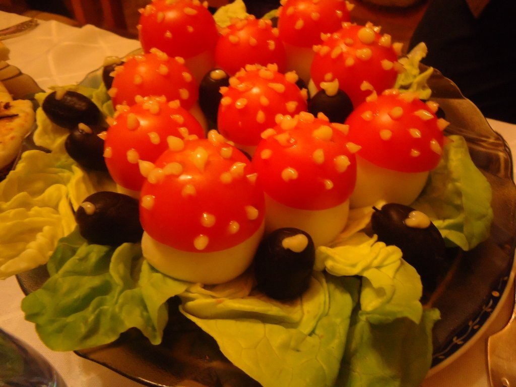 Ouale fierte,racite, decojite,se taie injumatate. Galbenusurile se paseaza cu sare, piper, mustar, ulei. Se umplu jumatatile de ou cu pasta obtinuta, se orneaza cu ceapa verde si gogosar sau masline, patrunjel(dupa imaginatie)