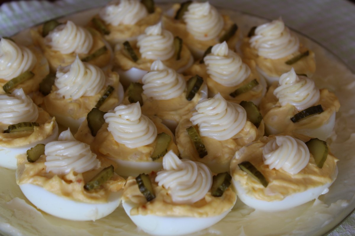 Cu un posh ornam ouale cu maioneza si castrevete murat.