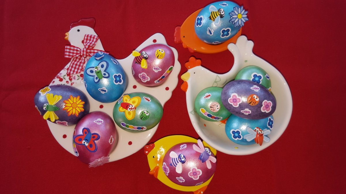 Ouale se scot din timp de la frigider, se spala bine cu detergent de vase si se clatesc. Daca avem oua maronii de tara procedam în felul următor pentru albire : pt 10 Oua folosim 10 lgt de sare și 500 ml otet, deci 1 lgt sare si 50 ml otet pt 1 bucata. Punem sarea și otetul în apa rece, amestecam si punem ouale de tara. Pt a nu se sparge la fiert e bine ca ouale sa ocupe cam tot fundul oalei ca sa nu se ciocnească intre ele. Din momentul cand incepe apa sa fiarba lasam 5 minute apoi le scoatem si aruncam apa. Frecam putin fiecare ou cu un burete de vase pt a îndepărta pojghita maronie apoi le spalam la chiuveta sub jet de apa rece. Le punem din nou la fiert în alta apa rece cu putina sare și otet, cat doriti și mai lasam10-15 min sa fiarba tare. Se scot, se sterg si se vopsesc când sunt puțin caldute. Se pune vopseaua în apa calda apoi se taie un colt. Punem câteva picături pe manusa, frecam palmele apoi punem oul si-l frecam și pe el. Ca sa iasa cum trebuie culoarea eu le-am dat de vreo 3 ori timp în care le-am lasat vreun minut intre operațiuni sa se usuce. Dupa ce s-au uscat bine aplicam decoratiunile.