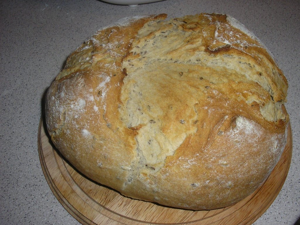 Am pus ingredientele in masina de paine exact in ordinea asta,am lasat la framantat si dospit,apoi am pus la cuptor, pe o tava cu hartie de copt; dedesupt am pus o alta tava cu apa.Am lasat la foc potrivit pt. aprox 45 de min.