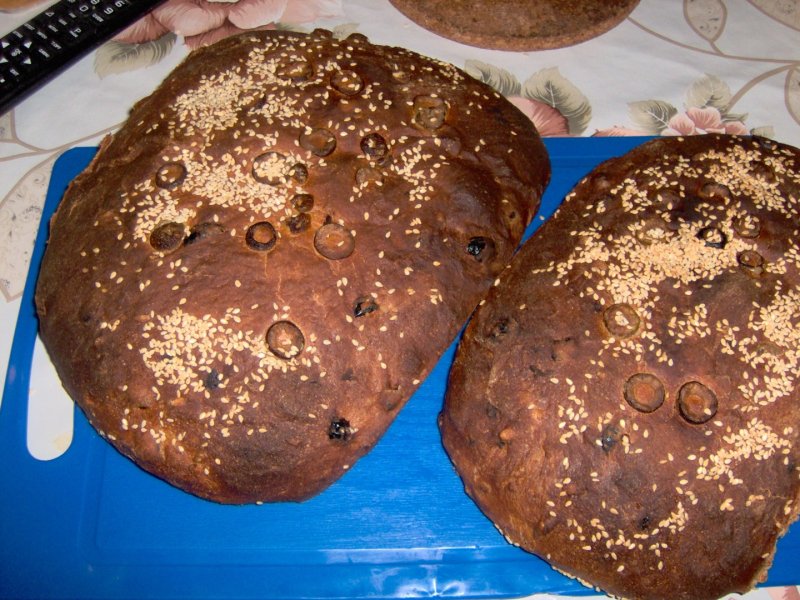 Se pregateste o tava de cuptor cu o foaie de pergament si se formeaza 2 paini care se lasa sa creasca 2 ore acoperit cu un prosop umed.