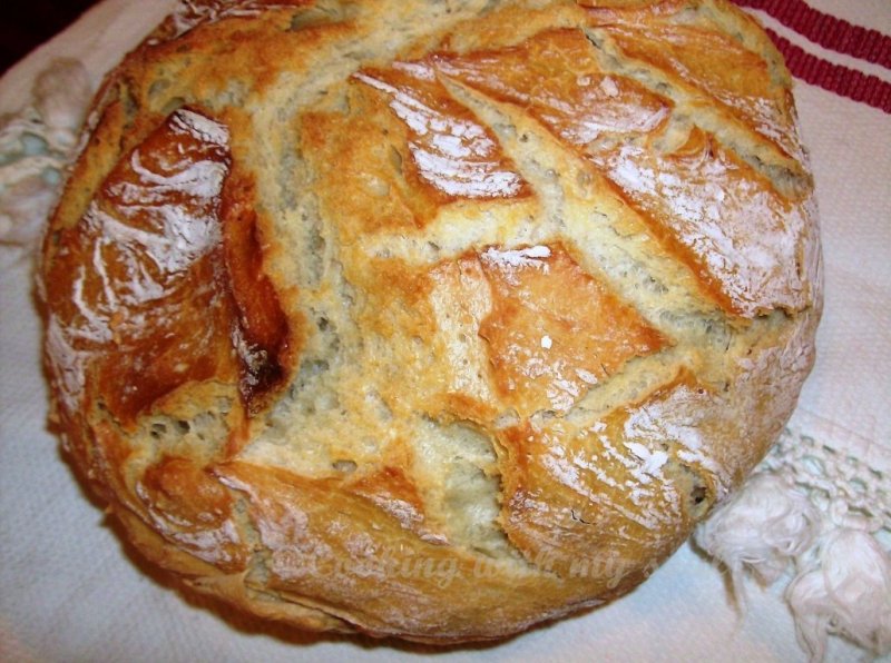 Scoate oala din cuptor si lasa painea sa se racoreasaca putin, apoi pune-o sa se raceasca pe un gratar. Las-o sa se raceasca bine, nu o taia inainte, ca altfel e cam cleioasa in mijloc.