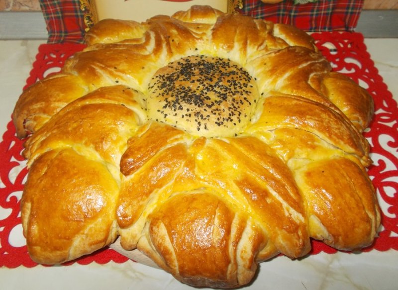 In mijloc, asezam bucata mica taiata la inceput, care fa forma mijlocul painii.