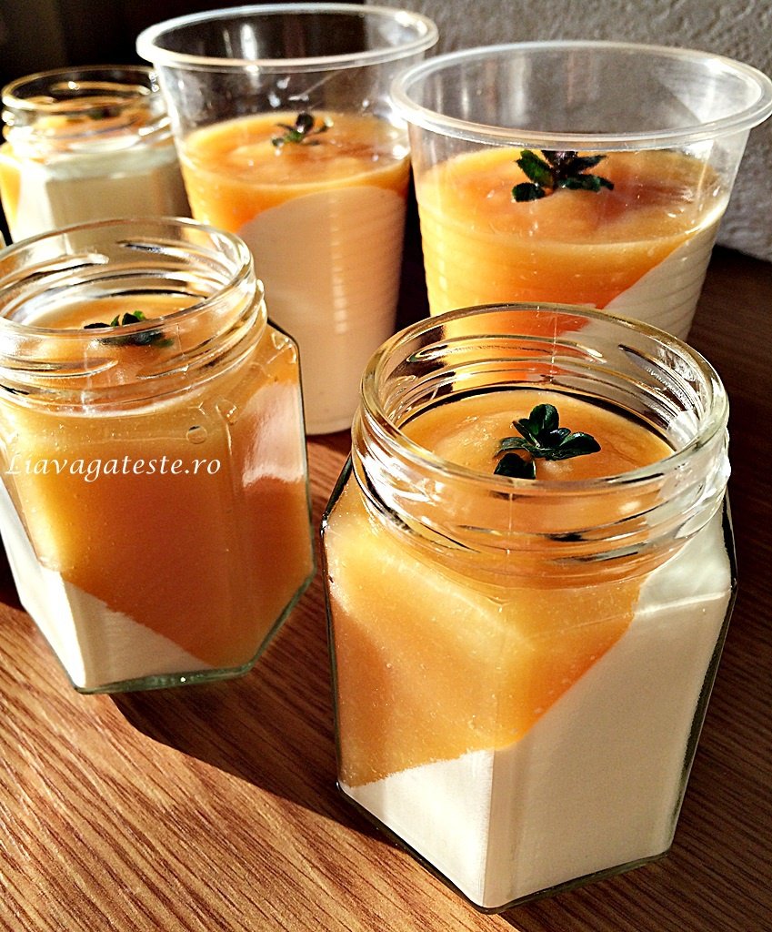 Turnam compozitia in forme inclinate, eu am folosit borcanele si cateva pahare, pe care le-am asezat pe tavi , vezi foto: , le acoperim cu folie sau capace in cazul borcanelor si le dam la frigider pentru 2h.