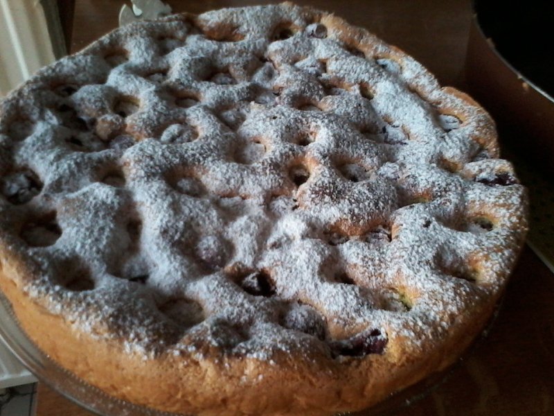 Cand este gata(facem testul cu scobitoarea)deschidem usa cuptorului si lasam tava inautru pt a se raci treptat. Cand s-a racit se pudreaza cu zahar pudra vanilat si se portioneaza.
