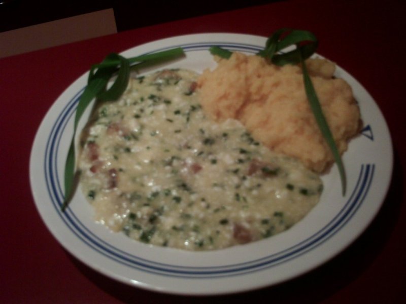 Este o mancare simpla dar deosebit de gustoasa si aromata.Urda proaspata are aroma brazilor si racoarea izvoarelor de munte.Iar combinata cu verdeata i da un gust deosebit...aroma slaminutei i inobileaza gustul...va doresc pofta buna!!!(se poate si fara slanina,o poti inlocui si cu carnaciori sau kaeser,cu ce vreti ,eu am prezentat reteta originala)