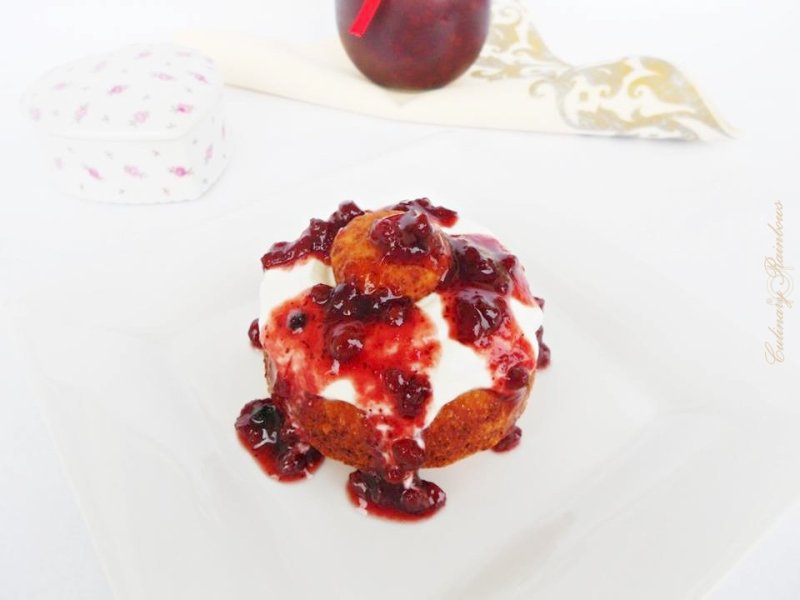 I-am servit calzi cu smântână și dulceață dulce-acrișoară de merișoare.