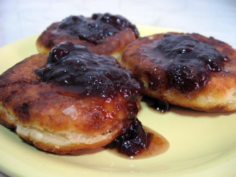 Se amestecă bine oul cu brănza de vaci, zahărul şi pliculetul de zahăr vanilat, după care se începe a se încorpora făina amestecată cu praful de copt. Se obţine un aluat din care sefac nişte biluţe , modelate cu măna. Apoi le-am aplatizat puţin şi am făcut o gaură în mijloc pentru a se coace uniform. I-am prăjit apoi în ulei încins, pe ambele părţi. I-am servit cu o minunată dulceaţă de căpşuni făcută de tata.