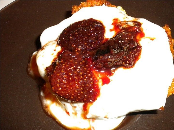 Deasupra fiecaruia turnam o lingura de smantana si una de dulceata de capsune