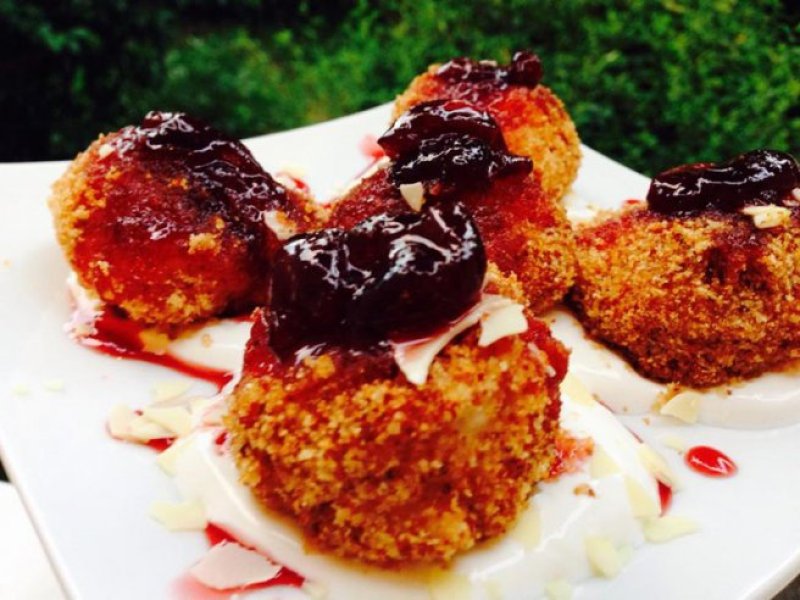 Se servesc cu smantana si dulceata de cirese.