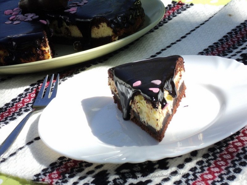 Turnam peste branza restul de aluat, nivelam frumos si introducem forma in cuptor, pentru inca 35 de minute.