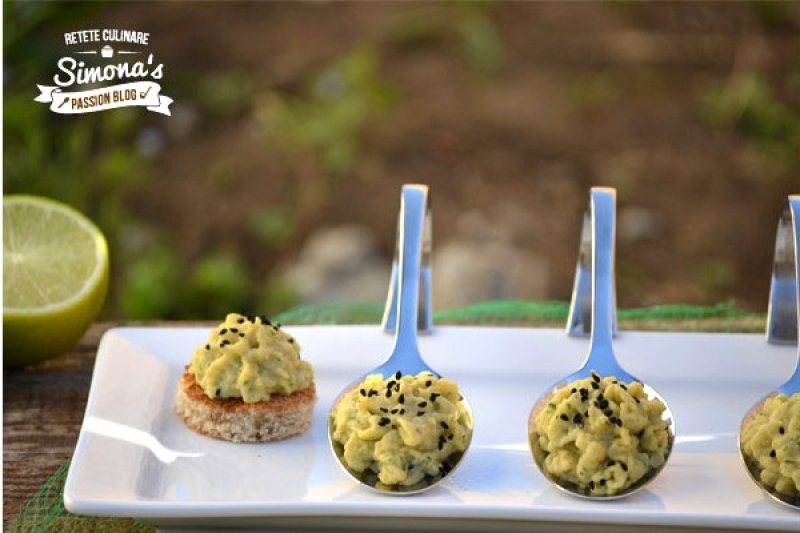 Avocado se curata si se taie bucati, se stropeste imediat cu zeama de lime.