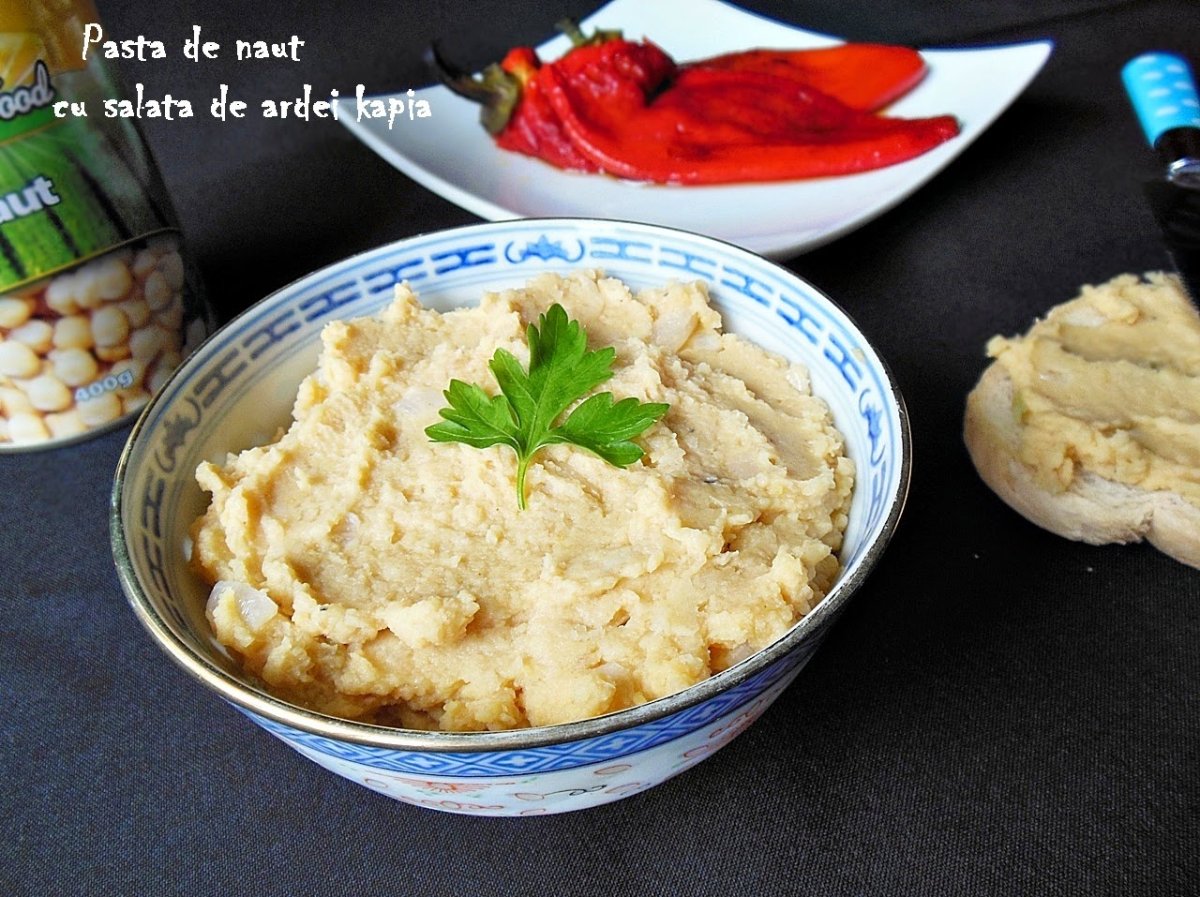 Boabele de naut le punem in blender cu 4 linguri din zeama lor si le facem pasta.