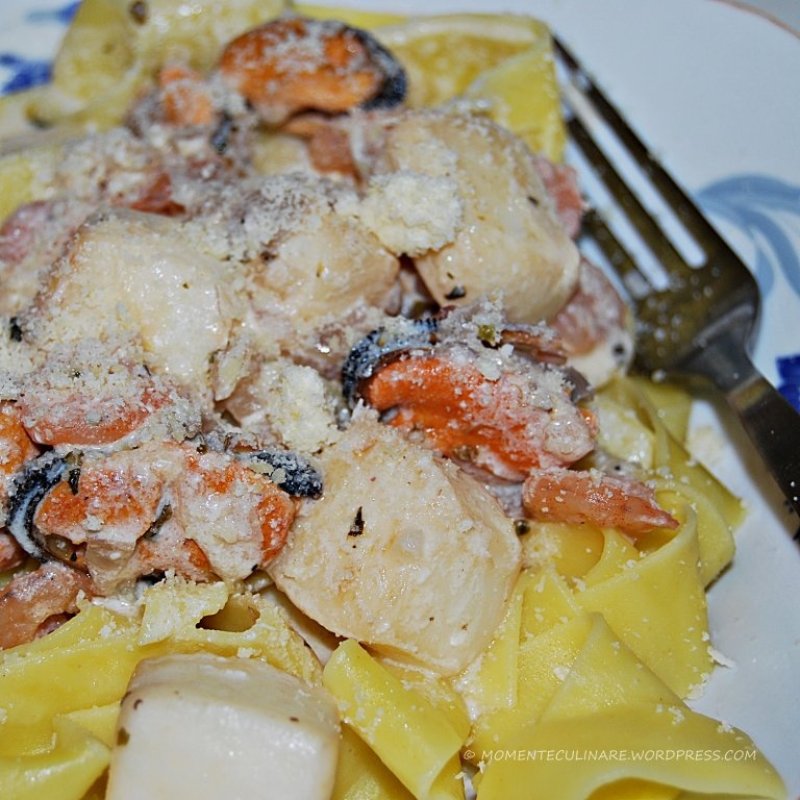 Pastele se servesc cu sos, parmezan ras si putina lamaie stoarsa.