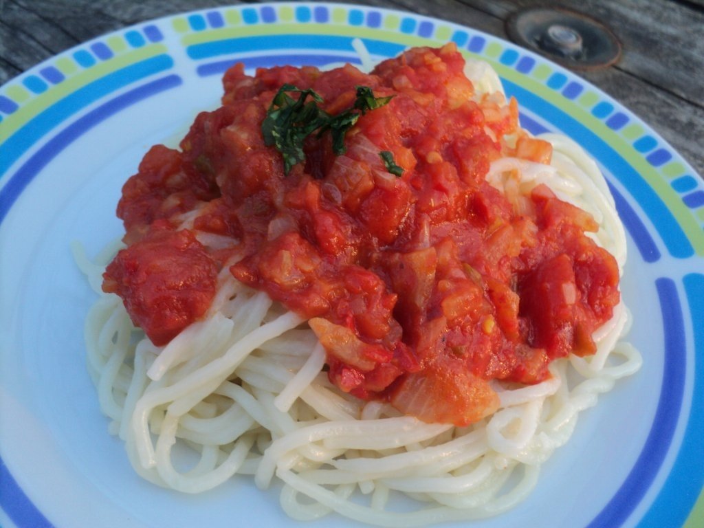 Fierbem pastele in apa usor sarata, dupa care le scurgem. Le servim cu sosul de rosii.