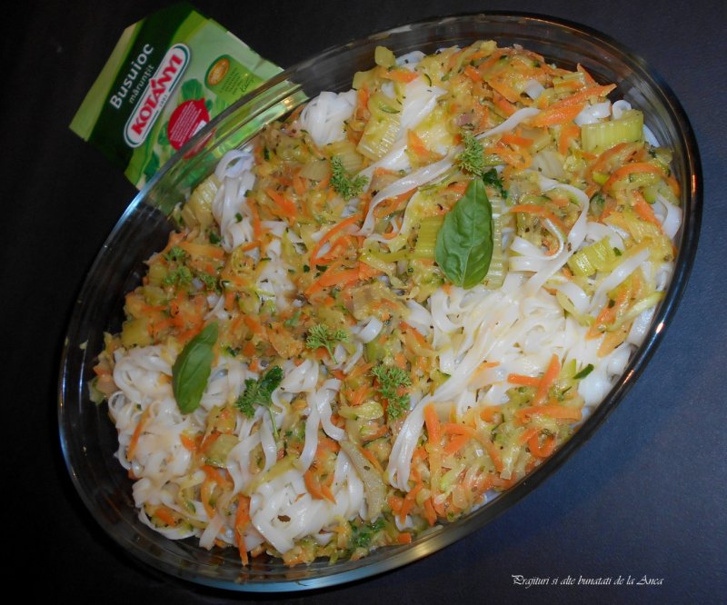 Legumele le curatam de coaja si razuim pe razatoarea mica morcovul si zuchini.Apio si ceapa le tocam cu un cutit cat de mici doriti.