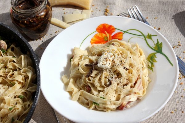 Farfalle cu rosii coapte si baconCiupercile se spala si se curata, apoi se taie felii.