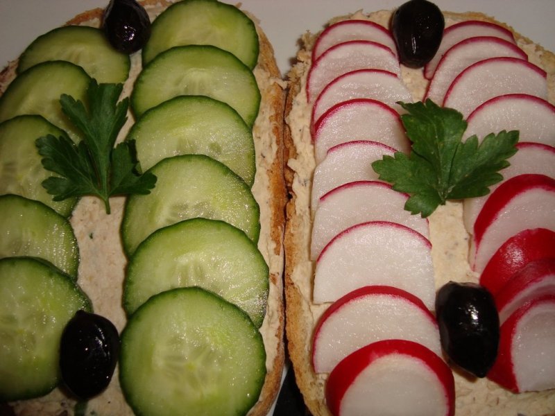 Se poate servi dimineata la micul dejun cu castravete, ridichi, masline fiecare dupa preferinta.