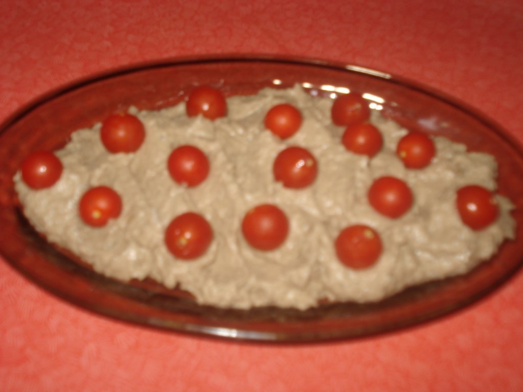 Se lasa la racit apoi se paseaza impreuna cu restul de unt,se mai condimenteaza daca e nevoie.Se orneaza dupa preferinta,eu am folosit rosii.