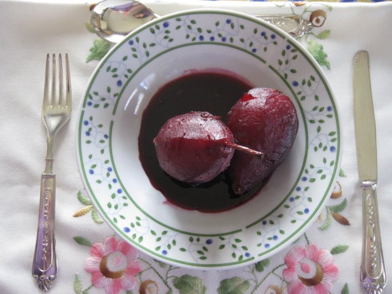 Curatam perele de coarja fara sa scoatem coditele. Punem intr-o cratita adanca perele cu zaharul, scortisoara, stelutele si praful de anason si la urma vinul. Punem la fiert la foc mediu cca. 30 min., intorcand din cand in cand pana cand furculita intra usor in para. Tragem de pe foc cratita, se pune una sau doua peri intr-o farfurie cu 3-4 linguri cu sosul de vin deasupra. Se poate servi calde sau reci, dupa preferinta. E o reteta tipica portugheza ce se serveste in ocazii familiale. Aceasta reteta se face cu vinuri si mirodenii variate, dar cea mai faimoasa si "gustoasa" e reteta facuta cu vin de Porto rosu sau rose. Va urez pofta buna!