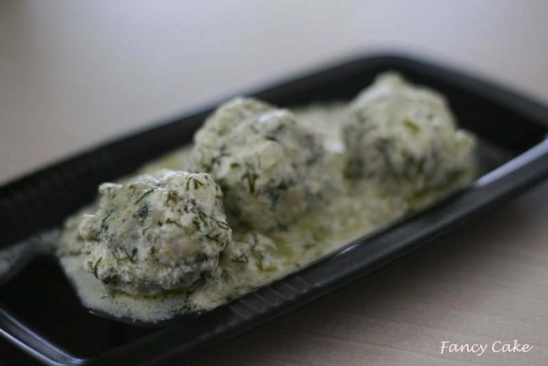 Intr-o tigaie punem 2 linguri ulei de masline, 5 linguri de apa si partea alba de la cele 2 cepe, taiata marunt. Cand ceapa se inmoaie, apoi adaugam smantana. Lasam sosul sa dea in clocot, apoi adaugam perisoarele si mai lasam la fiert pe foc mic 5 minute.