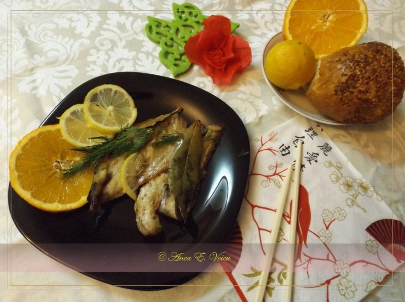 Se decoreaza cu marar, felii de lamaie si de portocala.