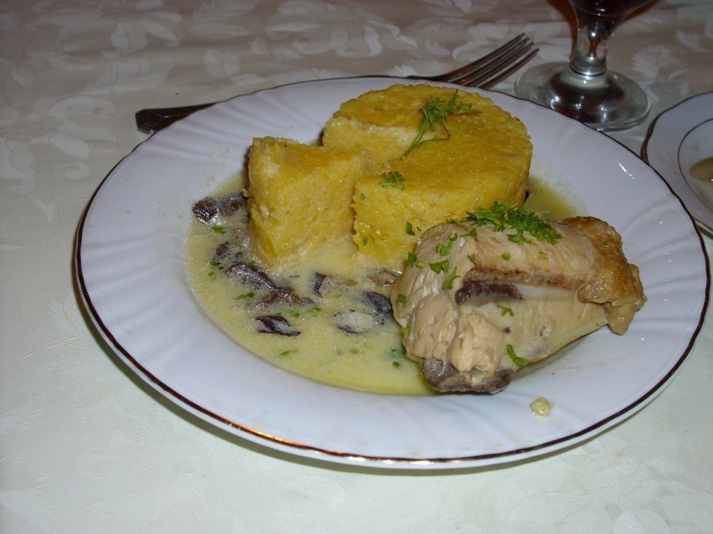 Intr-un castron, amestecati smantana cu o lingura de faina si zeama de carne rece, ca sa nu se opareasca faina. Turnati peste carne si ghebe, in cratita de pe foc mic si amestecati continuu ca sa nu se prinda de fundul cratitei, pana se ingroasa si fierbe usor. Gustati si potriviti de sare si daca va place adaugati si o lingurita de delikat. Se serveste cu mamaliga si patrunjel verde.
