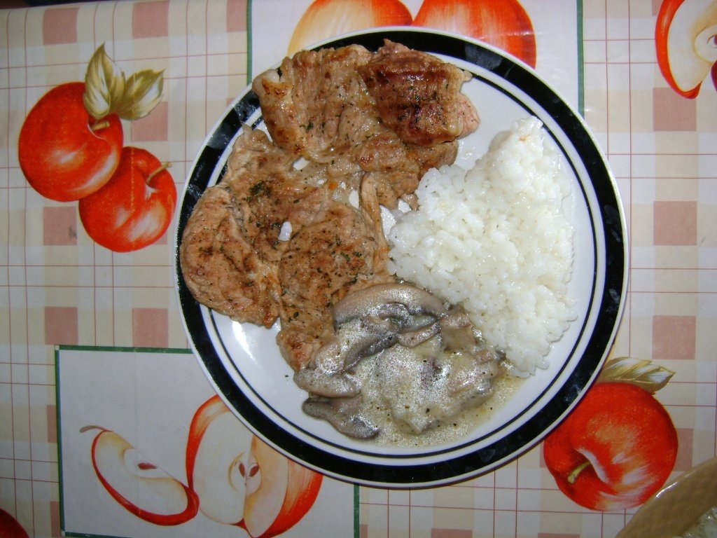 Pentru sos: se caleste ceapa taiata marunt in putin ulei,se adauga ciupercile,care inainte au fost oparite putin circa 10 minute, se mai lasa 5 minute dupa care se adauga apa cat sa le acopere si se lasa pana fierb.Spre sfarsit se adauga smantana treptat, amestecandu-se continuu la foc mic.