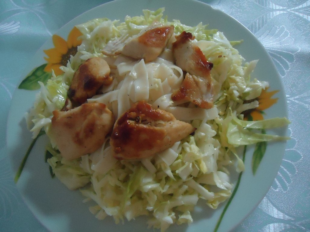 Varza tocata marunt, o asezonez cu un dressing obtinut din zeama de lamaie, o lingurita de zahar,ulei si sare.