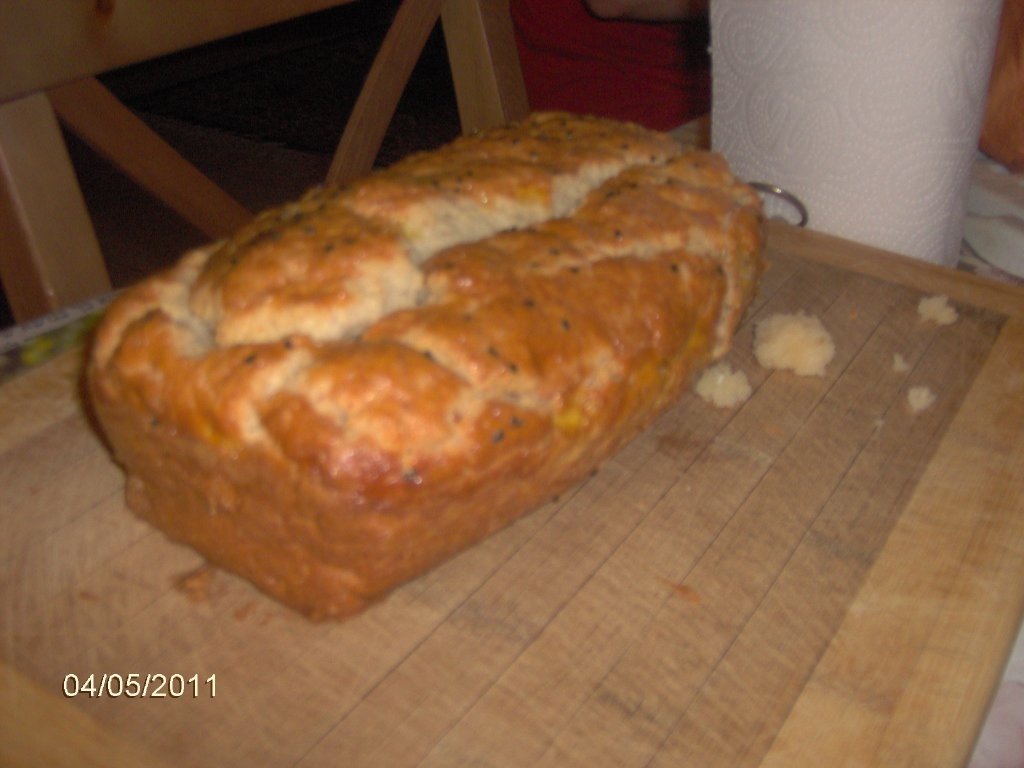 Se lasa putin la racit dupa care se serveste.Merge minunat cu unt proaspat.Cine nu doreste in forma de chec poate face piinicele personale care se coc 15 minute la 180 de grade.Este buna piinea ptr o gustare la sfirsit de saptamina.