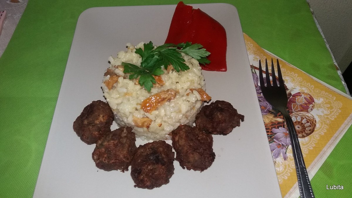 Se serveste pe farfurie intr-un inel pilaful iar in jur chiftelute.