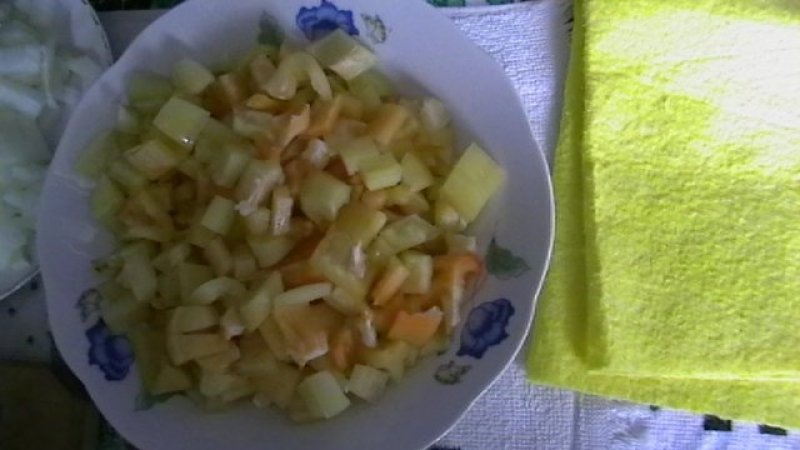 Ceapa se curata,se taie marunt si se pune la inabusit in ulei;